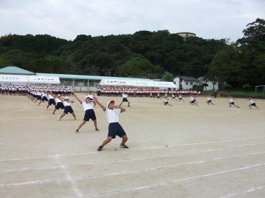 運動場いっぱいに広がって、秋空の下、一生懸命練習しました。