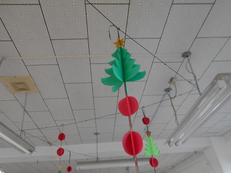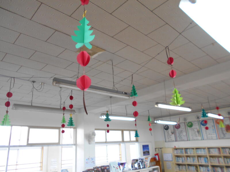 今、図書室は、マザーサンタの皆さんによるクリスマスの飾り付けや「クリスマスの本コーナー」の設置により、クリスマスに向け、子ども達が楽しみながら読書に親しむ雰囲気を作っていただいております。天井に飾られた可愛い多くのツリー、めくると仕掛けのあるツリーなど、子ども達が図書室に行きたくなる様な工夫がなされています。これからどんどん子ども達は図書室にやって来ると思います。マザーサンタの皆さん、子ども達への温かなプレゼントありがとうございます。