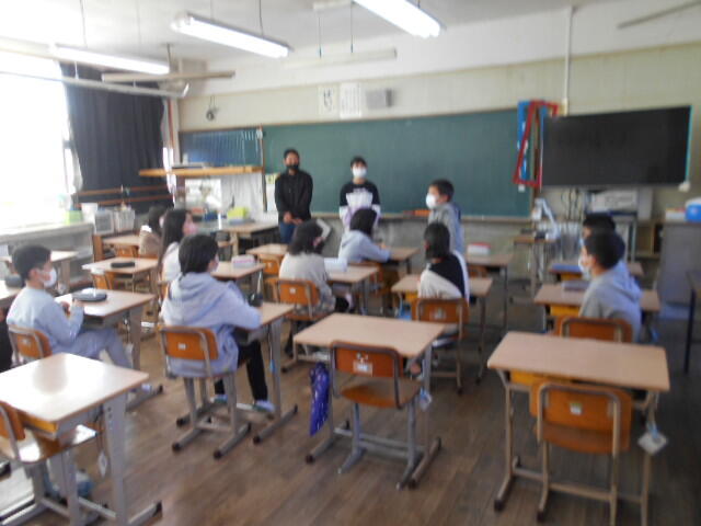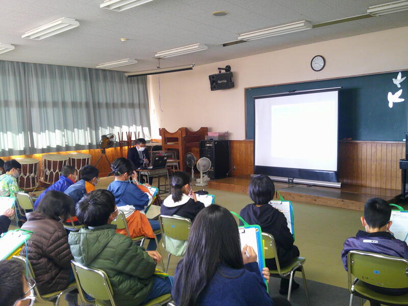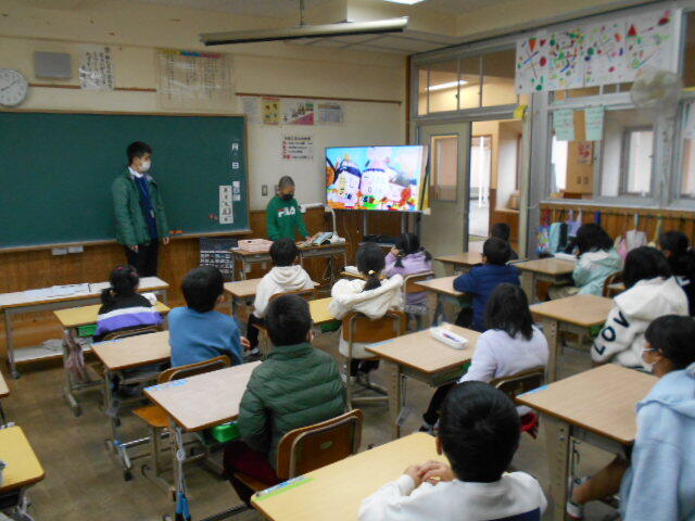 本日5年生が、ふるさと活用教育推進事業「子どもたちに伝えたいこと」を活用し、新聞社の方にお越しいただき、「新聞ができるまで」をテーマに講話をしていただきました。新聞社の仕事や企業が求める人材等の話を聞き、勉強になったようです。また、5年生は、国語の授業で「新聞を読もう」を学習したり、社会の授業で、情報産業について学習したりしており、本日の講話をとおし、これまでの学習をさらに深めることができたようです。今日の講話で学んだことを、4月から6年生となる5年生に活かしてほしいと思います。講師の先生本日はありがとうございました。
