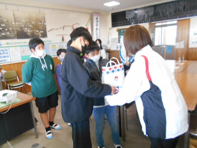 本日、社会福祉協議会の担当の方がお見えになられ、本校で集められた赤い羽共同募金を、代表児童がお渡ししました。集められた募金は、子ども食堂等の福祉活動等に、幅広く使われるそうです。本校では、ボランティア活動にも取り組んでいます。様々な形での社会貢献をとおし、「うつくしい心」を育んでほしいと思います。