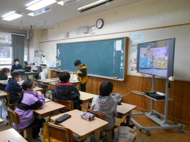 1月24日から30日までの期間が、全国学校給食週間であることから、本校では、昨日(18日)朝の時間に「給食感謝集会」を行いました。集会では、給食委員会の児童が担当の学級で、食に関する絵本の読み聞かせや、食に関するクイズを行いました。今回は集会をとおし、給食についての興味や知識を深め、給食に携わっている人々や食べ物の生命等に対し、感謝しようという気持ちを育てることを目的に実施しました。今後は、給食に関わりお世話になっている方々に手紙等を送り感謝の気持ちを伝える取組を進めていく予定となっております。