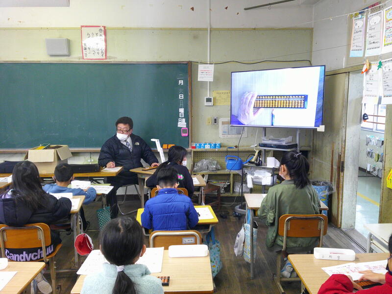 本日は3年生の算数の時間に、そろばん教室の方を講師に招き、そろばんを習いました。今日は、一桁や二桁の足し算、引き算の仕方を教えていただきました。ほとんどの子ども達が、今回初めてそろばんを扱ったようですが、講師の先生の指導を熱心に、そろばんでの計算にチャレンジしていました。