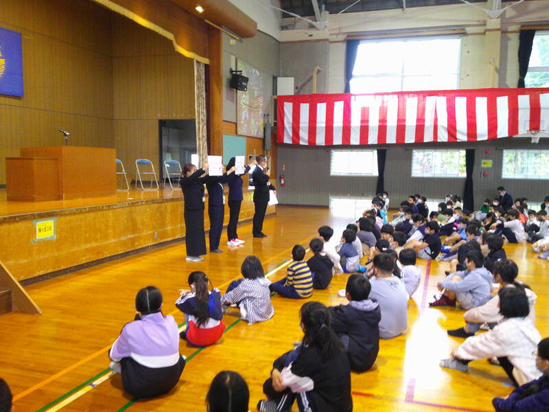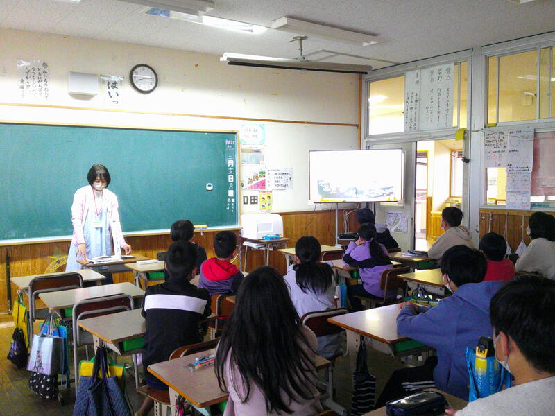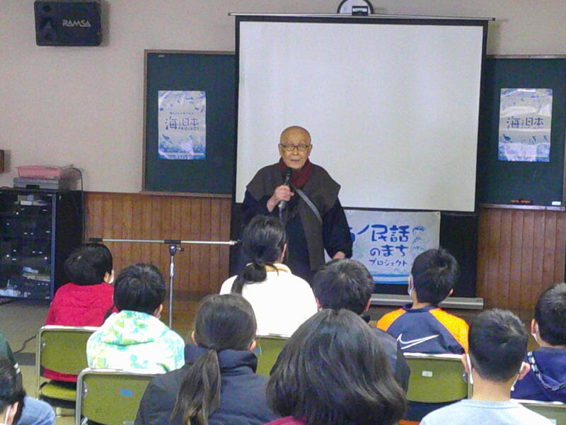 海と深い関わりを持つ日本という国の「海との関わり」と「地域の誇り」を、子ども達に伝え継ぐ、日本財団「海ノ民話のまちプロジェクト」が本校で行われました。本日は、5年生が、語り部の皆様による民話を聴き、延岡市を舞台にしたアニメ「琴姫の松」を視聴しました。子ども達にとって、大変貴重な時間となりました。5年生は、総合的な学習の時間に、延岡の民話について学習しています。今後の学習に生かしてほしいと思います。