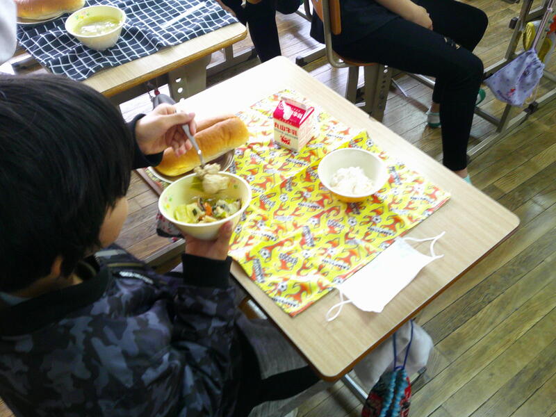 本日は、今年度最後の給食でした。明日、卒業する6年生にとっては、東海小学校最後の給食となりました。メニューはフルーツサンドと肉団子スープでしたが、肉団子は、給食調理員の皆さんが、一つ一つ丁寧に手作りしたものです。子ども達は美味しそうに、フルーツサンドと肉団子スープを味わっていました。給食室の職員の皆さん、東海小学校の子ども達のために、いつも愛情溢れるの給食を作っていただきありがとうございました。6年生にとっても良い想い出となったと思います。