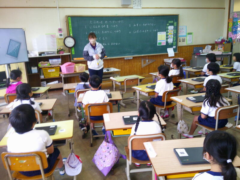 1年生が入学し、1週間あまりが経ちました。先週から給食も始まり、授業も本格的に進められています。今日は、初めてタブレットの使い方を学習したり、音楽では元気よく歌ったり踊ったり、楽しそうに学習に取り組む姿が見られました。また、正しい姿勢や筆記用具の持ち方に気をつけながら、真剣に書写に取り組む姿も見られました。給食も美味しかったようです。先生の話をしっかり聞き、いろんなことをがんばっている1年生です。