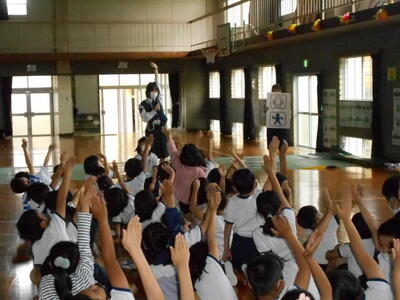 5年生では、総合的な学習の時間に延岡の民話について調べています。14日(火)に「延岡の語り部・萌ぎの会」の会員の方にお越しいただき、「1.メキシコ女王の伝説、2.太郎兵衛狐と源吉さん、3.琴引きの松、4.琴塚、5.愛宕山と日向御前」といった演目で、出前語りをしていただきました。今回の話しをもとに学習を深め、今後の活動に生かしていく予定となっています。萌ぎの会の皆様ありがとうございました。