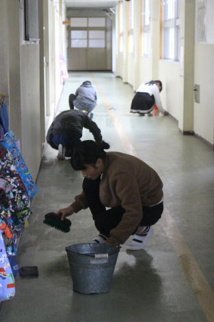 6年生のおかげで、玄関前がとてもきれいになりました。