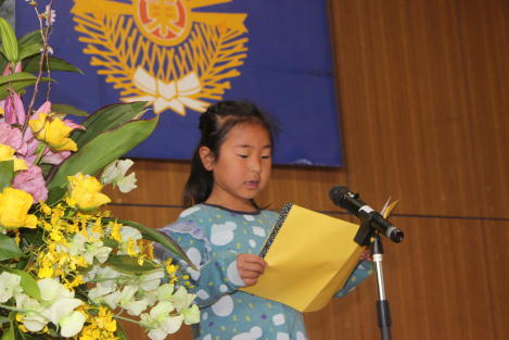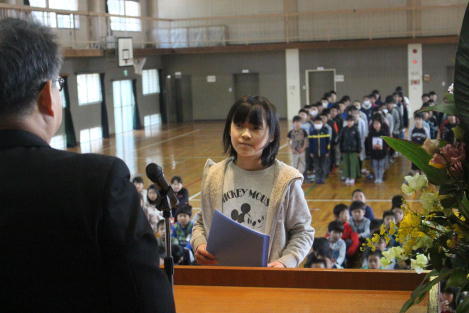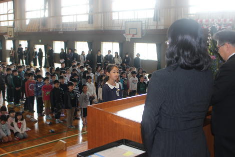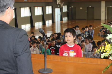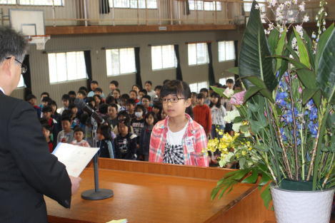 1人1人のあいさつの後、代表児童から歓迎の言葉が贈られました。