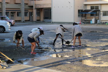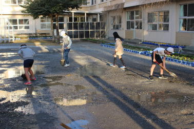 ここ数日、6年生が穴埋め作業に取り組んでいます。