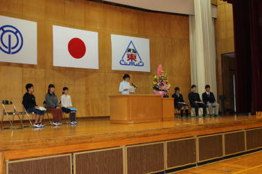 下に紹介する画像は、先日の全校朝会のワンシーンです。