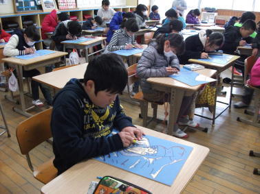 国語や算数の授業を行っているクラス、図工で版画に取り組んでいるクラス、生活科で校外に出ている学年等、様々な姿を見ることができました。