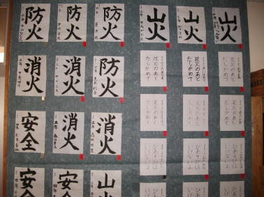 「掲示してある習字の作品が丁寧に書かれてある。」