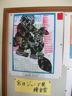 現在、保健室前と校長室前に代表児童の作品が掲示してあります。