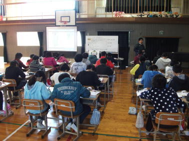 2校時は1、2年生を対象に、多目的室でビデオを視聴しました。