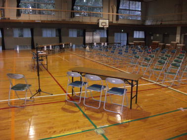 体育館は、整然と椅子や長机が並んでおり、午後の研究会を待つばかりでした。
