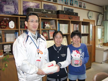 先日、本校の校長室にて、赤い羽根共同募金を担当の方(延岡市社会福祉協議会)をお招きしてお渡ししました。