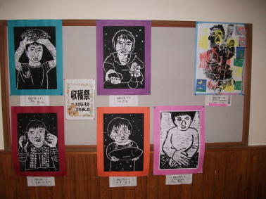 現在、職員玄関前の掲示板には、学習教室の皆さんの作品が飾ってあります。