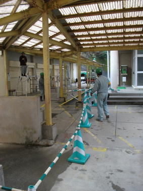 1月6日(水)、いよいよ旧給食室の解体・撤去作業に係る工事準備が始まりました。