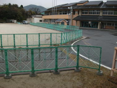 運動場にはトラックが行き来するための安全柵が取り付けられました。