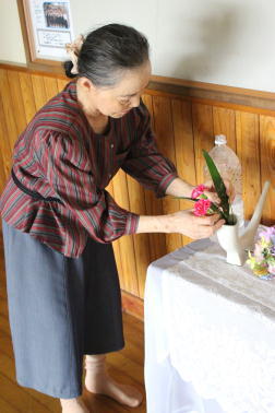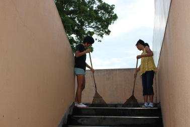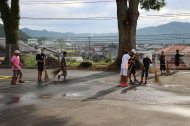 キャサリン先生がほうきを手に掃除を始められたのです。