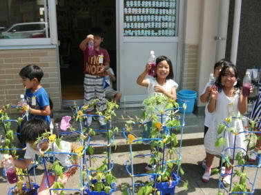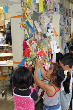 七夕飾りを眺める子どもたちの様子を紹介します。