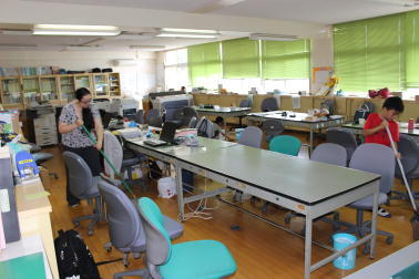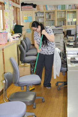そんな中、やはりほうきの音が職員室に聞こえてきます。