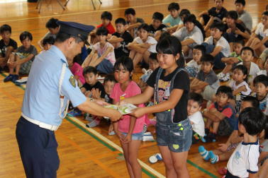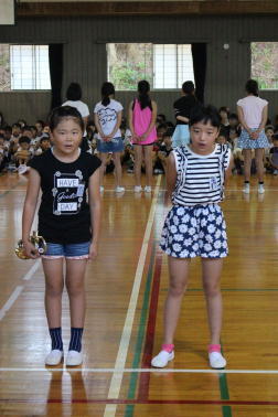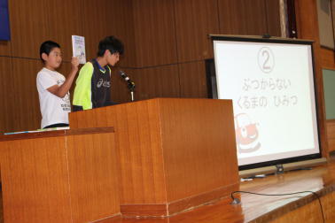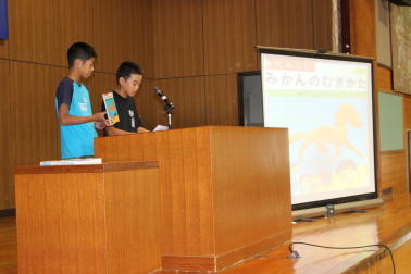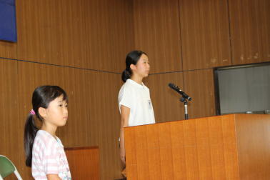 湯浅さんと川島さんが児童代表作文を発表しました。