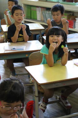 昨日、児童向けのフッ化物洗口説明会を開きました。