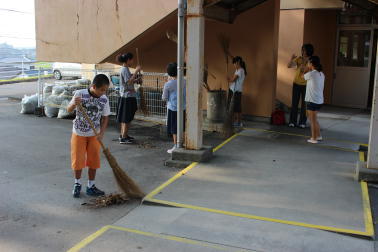 昨日の朝、登校してきた6年生が箒を手にしていました。