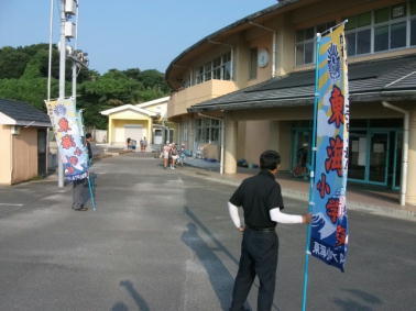 東海小の“オリジナルのぼり”が朝風に揺れていました。