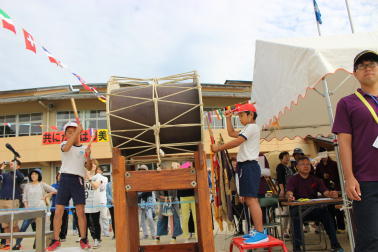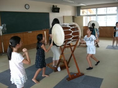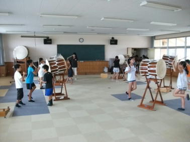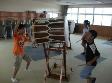 昼休み時間に、ばんば太鼓の音が響いてきました。
