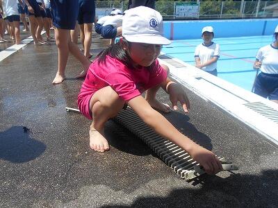 少ない指示で、自分たちで何をすればいいのか考えながら、集中して活動できるのはさすが最上級生の6年生です。1時間の活動で、さらにプールがきれいになりました。