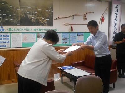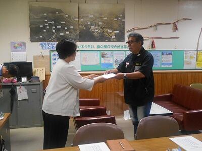 まず、学校運営委員を務めて下さる方々へ、委嘱状を交付いたしました。