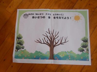 校長先生のお話に続いて、「あいさつ ナイス! 運動」についてのお話もありました。朝のあいさつがもっともっとよくできるように、来週からあいさつ運動に取り組みます。よいあいさつができたお友達にはシールが渡されます。渡されたシールは学級にある「あいさつの木」に貼っていきます。東海小に明るいあいさつがいっぱい響いて、どのクラスの木もあいさつの花できっといっぱいになることでしょう。