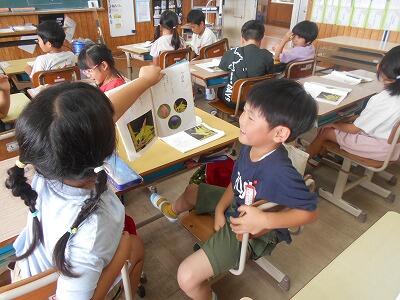 1年生は国語の説明文「つぼみ」を学習していました。先生の問いかけにみんな元気よく「はいっ!」とまっすぐに手を挙げています。自分の意見を発表し終わった後は、「みなさんどうですか。」と尋ねたり、隣の席のお友達とお互いの考えを伝え合ったりすることなどしっかり頑張っていて、もう、上の学年に負けないくらいの姿でした。1年生の成長にびっくりです。