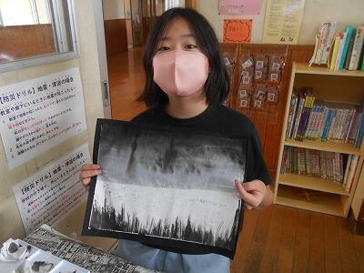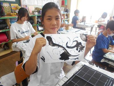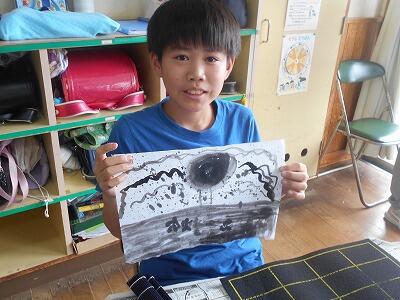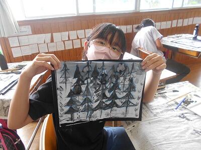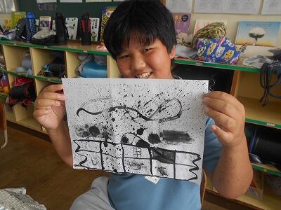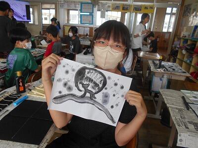 こちらは6年生の図工「墨と水から広がる世界」の様子です。墨の濃淡を生かしながら筆を走らせたり、しぶきを飛ばしたりなど、それぞれ自分なりの工夫をしながら、思い思いに作品を作っていました。自分の作品に集中している姿はさすが6年生。なかなか味わい深い作品に仕上がってましたよ~