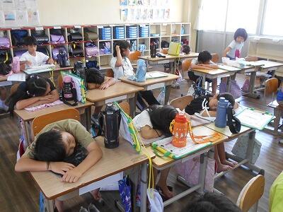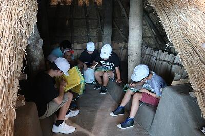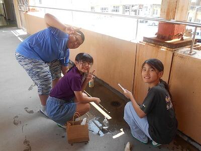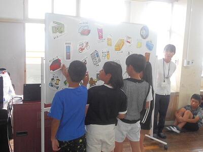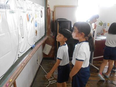 学校に着いたら、教室に戻ってしばしリラックスタイムです。暑い中でしたがしっかり歩いて、町の様子をくわしく観察できましたね。みんなお疲れ様!