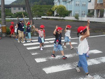 横断歩道の渡り方も、手の挙げ方、左右確認、しっかりできました!