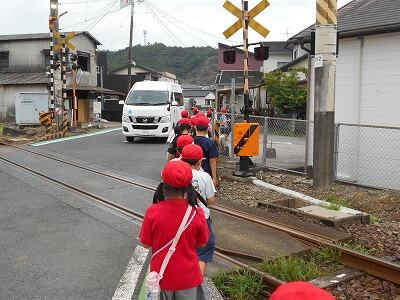 横断歩道、踏切、せまい歩道、事前に確認した安全に注意して歩くこともしっかりできました。これまでのたんけんで一列歩行もバッチリ、身に付いてます。