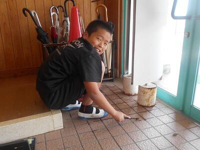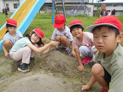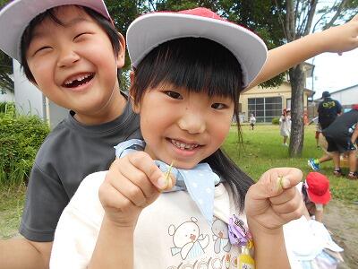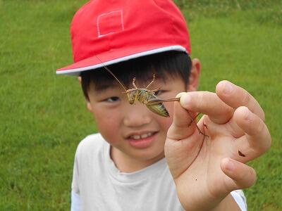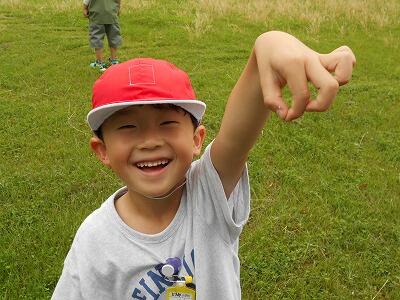 「先生、見て。つかまえたよ。」虫とり名人も現れました! 笑顔がとっても素敵です。