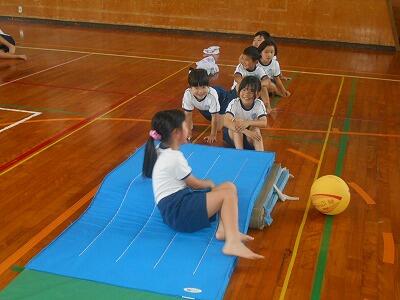 低学年でのマット遊びの運動が、これからのいろんな技の習得に繋がっていきます。身体を楽しく動かして、器械運動の基礎的な力が養われる授業でした。2年生のみんな、これからもいろんな動きを楽しくマスターしようね。きっとすごい技ができるようになるよ。楽しみだね。
