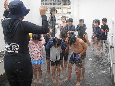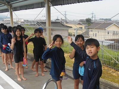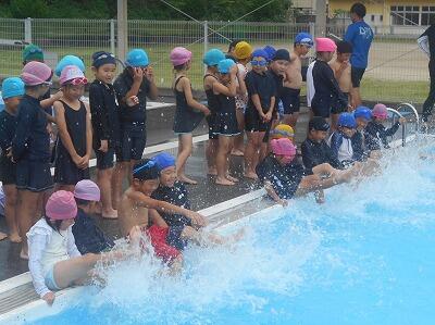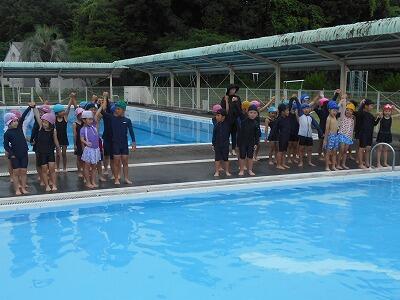 6月24日(火)、写真は1年生のプール開きの様子です。