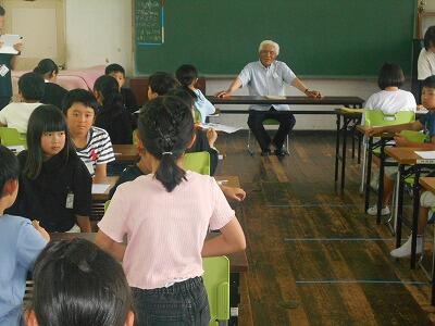 「なぜ、団七踊りにはいろんな楽器があるのですか。」「団七は仇をうったあと、どうしたんですか。」「どうすれば踊りを上手く踊れますか?」 矢野さんの説明を聞いた後、子どもたちからはたくさんの質問が出されました。知りたいことがいっぱいの4年生のみんなです。団七踊りを大切にする気持ちが、真っ直ぐに手をあげて質問しようとする姿に表れていました。