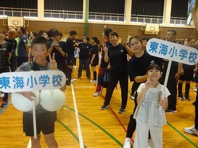 6月28日(土) 北方勤労者体育館にて延岡市PTAミニバレーボール大会が開催されました。東海小学校からも2チームが出場し、他校のPTAの方々とミニバレーボールを楽しみながら交流を深めました。この日は快晴でとても暑い日でしたが、延岡市内の小中学校から集まった各チームのみなさんの熱い闘志で、体育館内はさらに熱気ムンムンでした。各コートではたくさんの歓声が響き、参加したみなさんは勝っても負けても和気あいあいと気持ちのいい汗をかいていました。