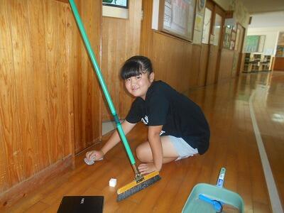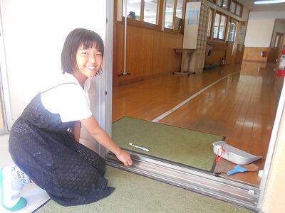 7月1日(火) 職員室前の廊下で一生懸命に掃除している6年生がいました。話を聞いてみると、家庭科の学習で活動しているとのこと。手には使い古した歯ブラシと割り箸にティッシュを巻き付けた道具を持っていて、「二刀流です。」とサッシの溝を一生懸命にきれいにしてくれていました。