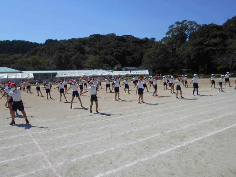 本日は素晴らしい秋晴れのもと、各学年、運動会の練習に励んでいました。1校時は1年生が表現、2校時は3年生が団技、3校時は6年生が表現、4校時は2年生が団技、5校時は5年生が表現の練習に取り組んでいました。どの学年も本番に向け、一生懸命がんばっていました。