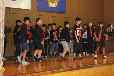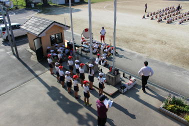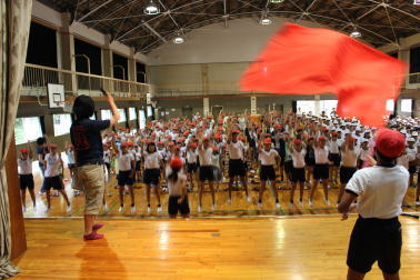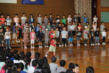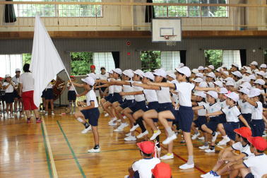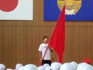 さて、昨日の朝の活動の時間に運動会結団式を行いました。