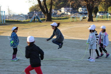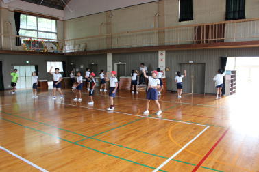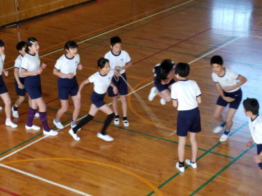 昨日の朝の活動の時間に、全校で長縄の練習を行いました。
