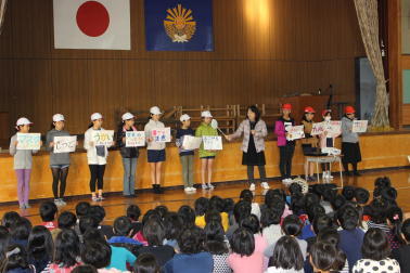 給食クイズや紙芝居、感謝状贈呈などを行いました。