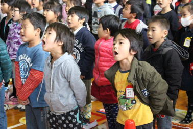 昨日の朝は、体育館が震えるほどの歌声が響いておりました。
